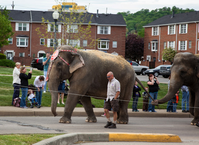 The circus is in town and they always walk the elephants from the train to the Civic Center. Pretty cool.