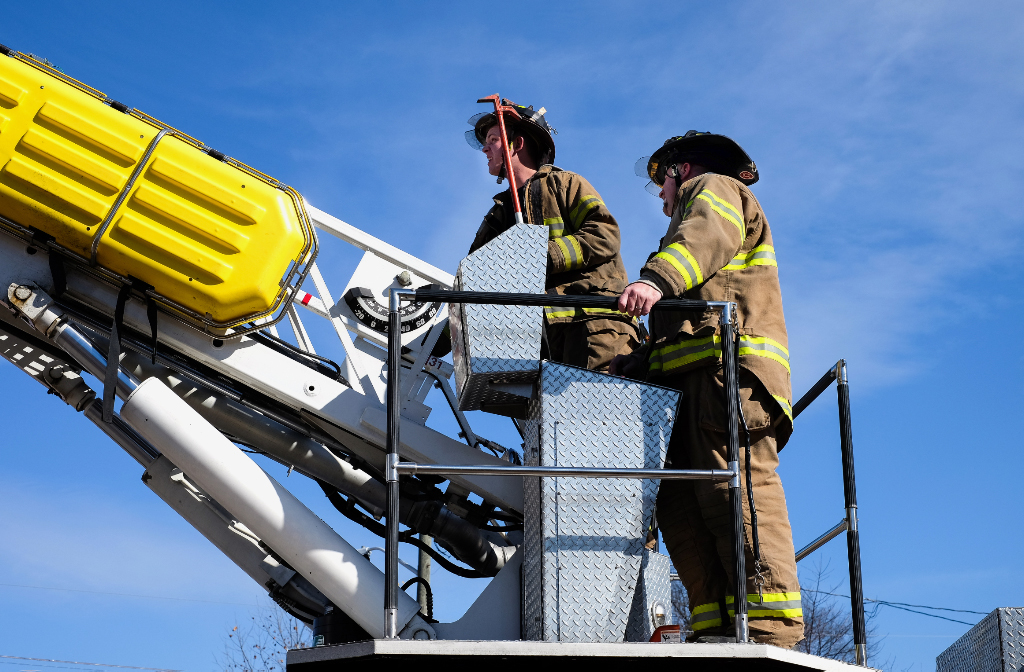 Firefighters Luke Adkins, Eric Tucker and Mike Lively getting ready to make some cold-water-dives in the Kanawha River Monday afternoon.